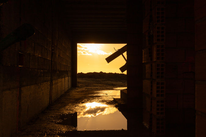 O terreno apresenta uma topografia com diferenças de cota, o que requer uma implantação das habitações ao longo do desnível existente. Uma construção pré-existente no terreno será demolida, e os resíduos serão aproveitados para a modelação do terreno necessária ao projeto.